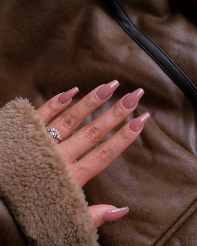 Rich neutral nails offer timeless elegance with a holiday-ready feel. Creamy beige, taupe, or dusty rose shades feel polished and luxurious without being flashy. This manicure works for every occasion, outfit, and nail length, making it a safe yet stylish choice throughout the entire festive season.